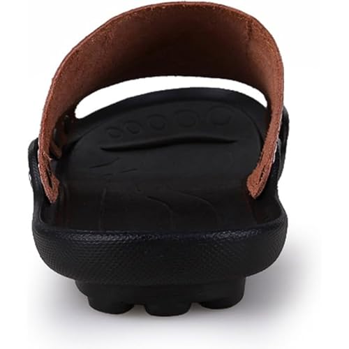 Men's Leather Slide Sandals - Summer Anti-Slip Flat Slippers Beach Casual Comfort Shoes 5