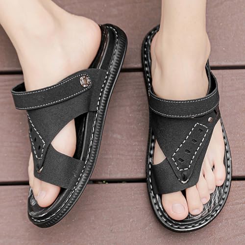 Premium Men's Flip Flop Sandals with Leather Upper Two Ways to Wear Comfortable Non Slip Rubber Sole Fashionable Design Ideal for Summer Outdoor Activities 7