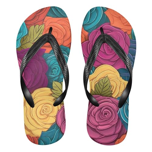 Color Rose Flower Beach Summer Casual Flip Flop Sandals Non-Slip Quick Dry for Women Men 214B2916 6