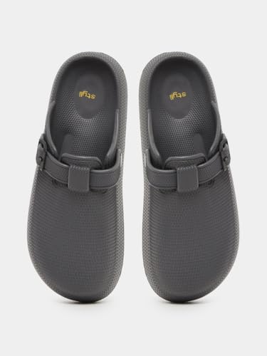 HOT ! Men 7012454514 Textured Buckle Embellished Slip On Sandals 41 Grey