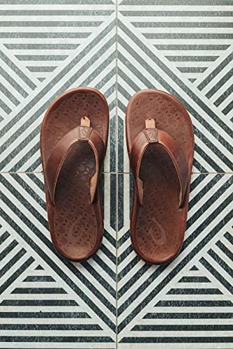 OLUKAI 'Ilikai Men's Leather Sandals, Full-Grain Leather Flip-Flop Slides, Anatomical Footbed & Cushioning, Comfort Fit & Wet Grip Rubber 6