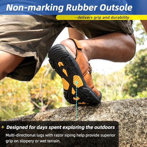 • ▶【Genuine Rubber Sole】High-quality genuine rubber sole that's both grippy and light.Men's athletic sandals with secure foot capture lace system.Traction is excellent on dry ground,mixed terrain,screen or on wet,slippery rocks when crossing streams.