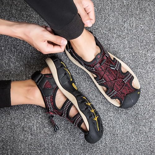 Men's Comfortable Breathable Sandals Ultra Light Elastic Hollow Out Beach Sandals Personalized Simple Men's Shoes Fisherman Sandals Red 6