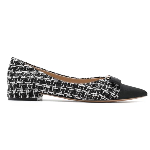 • Premium Material: Made of premium tweed and grosgrain upper, these pointed toe flats offer a sleek look,offering durability and timeless elegance, making it an essential addition to your luxury footwear collection