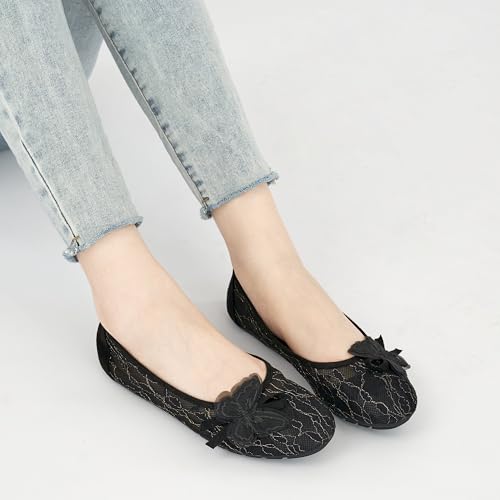 Aomigoct Ballet Flats Shoes for Women: Dress Comfortable Lace Womens Flats - Soft Casual Wedding Work Shoe 1