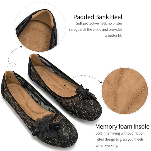 Aomigoct Ballet Flats Shoes for Women: Dress Comfortable Lace Womens Flats - Soft Casual Wedding Work Shoe 5