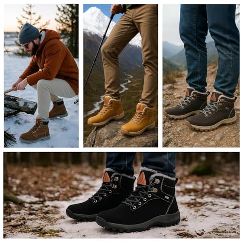 • Warm Fleece Winter Boots for Men: Fully lined with ultra-soft fleece, these insulated mens snow boots trap heat to keep feet warm in cold temperatures. Whether you're hiking, camping, or commuting, the warm winter hiking boots are built for comfort in cold weather