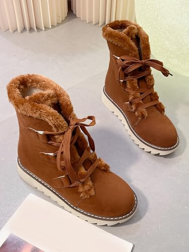 Snow Winter Boots for Women, Plush Lined Hiking Snow Winter Boots, Comfortable Hiking Booties Furry Mid Calf Warm Lightweight, Lace Up Platform Winter Boots 4