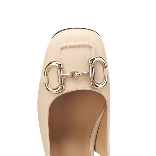 Women's Retro SquareToe Slingback Pumps Fashion Buckle Closed Toe Dressy Slingback Block Heels Office Wedding Party High Heel Shoes for Women 6