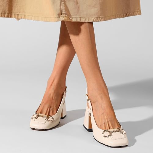 HOT ! Women's Retro SquareToe Slingback Pumps Fashion Buckle Closed Toe Dressy Slingback Block Heels Office Wedding Party High Heel Shoes for Women