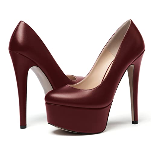• ❤ The insole is made of high end elastic sponge, which can make the high heel pumps shoes,You dwn't feel tired after wearing them for hours. The heel of the red wine cup shape shapes its stability. It is such a comfortable high heel shoe that definitely impress you.