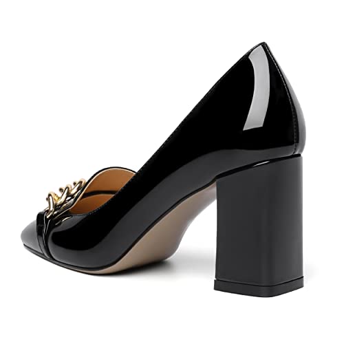 MOVINSTEPS Womens Dress Solid Slip On Square Toe Office Metal Chain Patent Block High Heel Pumps Shoes 3 Inch 3