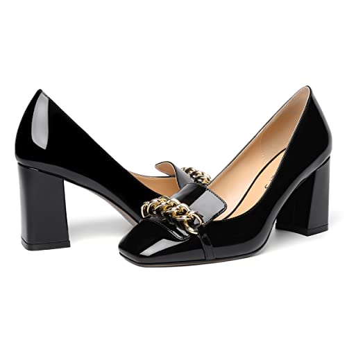 MOVINSTEPS Womens Dress Solid Slip On Square Toe Office Metal Chain Patent Block High Heel Pumps Shoes 3 Inch 6