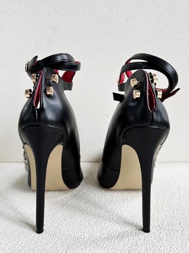 Frankie Hsu Ladies Sexy Elegant Stiletto High Heeled Pumps, Lovely Black Crystal Rhinestone Gem Stone Lovely Red Style, Big Large Size US4-14 Dressy Shoes for Women Men 5
