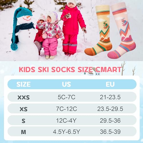 unenow Merino Wool Ski Socks Kids 2 Pairs, Winter Warm Snowboarding Thermal Socks for Boys Girls Toddlers 4