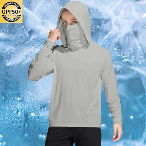 Boys&Girls Sun Protection Clothing Kids Hoodie with Face Mask Rash Guard UPF 50 + Long Sleeve Quick Dry Beach Swim Shirt 7