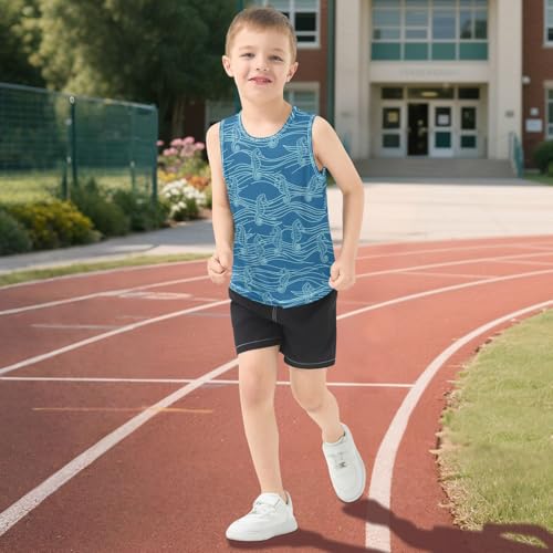 J JOYSAY Seahorse Wave Blue Boys Tank Top Sleeveless Muscle Shirts Quick Dry Sport Active Workout Kids T-Shirts 3-15T 3