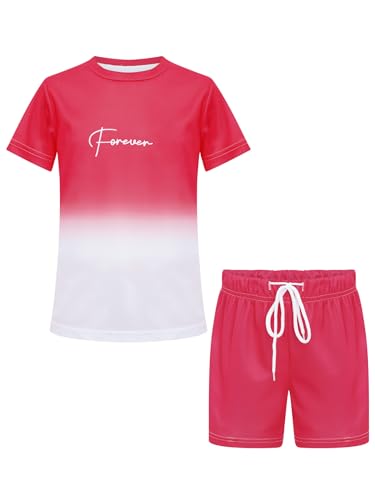 Linjinx Kids Boys Gradient Sports Jersey Football Basketball Athletic Tracksuit Short Sleeve T-Shirt and Shorts Set Red 11-12 Years 1