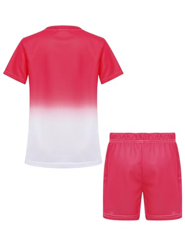 Linjinx Kids Boys Gradient Sports Jersey Football Basketball Athletic Tracksuit Short Sleeve T-Shirt and Shorts Set Red 11-12 Years 6