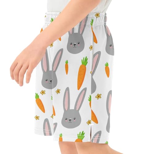 J JOYSAY Rabbit Carrot Flower White Boys Athletic Shorts Kids Youth Casual Shotrs with Pockets Elastic Waistband 4