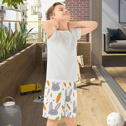 J JOYSAY Rabbit Carrot Flower White Boys Athletic Shorts Kids Youth Casual Shotrs with Pockets Elastic Waistband 6