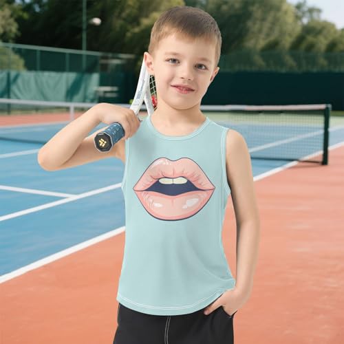 Boys Tank Top Shirts Cartoon Red Lips Sleeveless T-Shirts Crew Neck for Kids Clothing Children 5