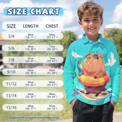 • Size: This long-sleeved children's shirt comes in 7 sizes and is suitable for children aged 3 to 16. When purchasing, please refer to the size chart on the left to choose the appropriate size for your child.