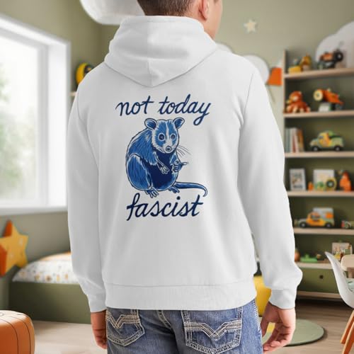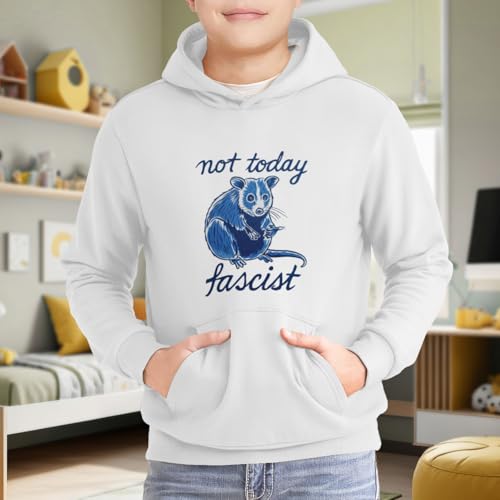 HOT ! Kids Funny Not Today Fascist Possum Meme Smash Fascism Boys Girls Lightweight Kangaroo Pocket Fleece Hoodies