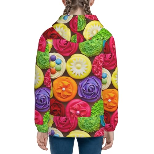 Brightly Colored Cupcakes Kids Pullover Hoodies Boys Zip Up Sweatshirts Girls Athletic Clothes with Pocket 5