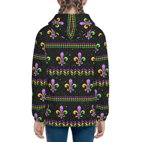Mardi Gras Fleur de Lis Kid Hoodies Boys Zip Up Sweatshirts Girls Pullover with Pocket Black 4