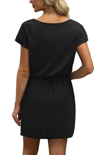 OFEEFAN Summer Dresses for Women 2025 V Neck T Shirt Casual Mini Dresses Tie Waist Sundresses with Pockets 3