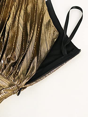 AOMEI Women's Luxury Metallic One Shoulder Sleeveless Elegant Pleated Long Dress 5