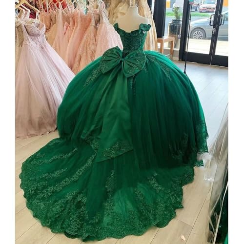 Gorgeous Off Shoulder Quinceanera Dresses Puffy Long Ball Gown with Train Lace Beaded Tulle Sweet 16 Dresses 5