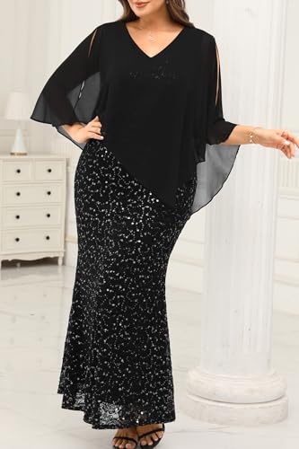 • 【Feather-Light Chiffon Cape & Sparkle-Embellished Lace Skirt】Crafted with premium flowy chiffon for the cape that drapes elegantly, paired with a figure-flattering mermaid skirt in delicate lace intricately adorned with shimmering sequins – offering head-turning glamour.