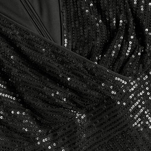 Women's Long Sequin Formal Dresses Long-Sleeve Cocktail Wedding Guest Dresses Elegant V Neck Party Gowns 6