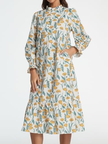 Women Fall Dresses 2025 Casual Puff Long Sleeve Mock Neck Midi Dress Floral Long Dress 6