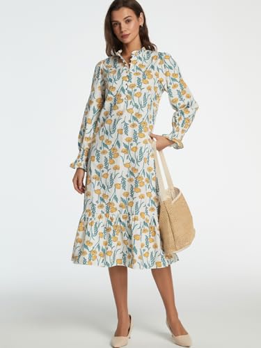 Women Fall Dresses 2025 Casual Puff Long Sleeve Mock Neck Midi Dress Floral Long Dress 2