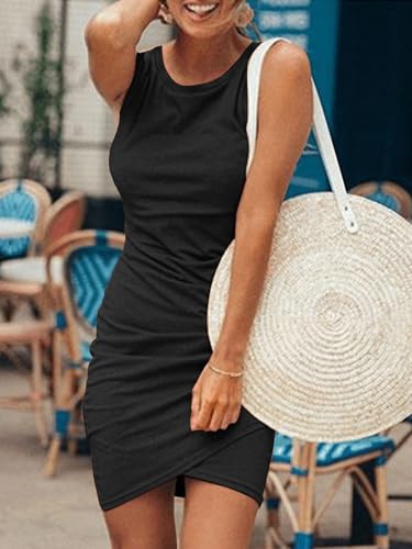 More information about AUXDIO Women Summer Bodycon Dresses Casual Tank Sleeveless Ruched Wrap 2025 Party Club Mini Dress