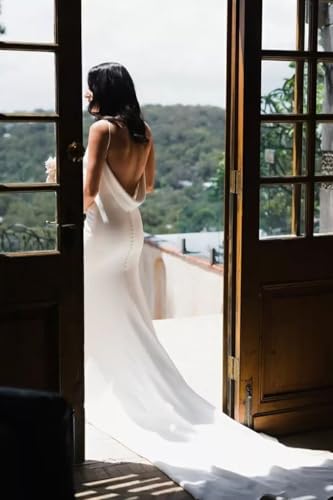 More information about zcbang Mermaid Wedding Dresses for Bride 2025 Beach Satin Sleeveless Bridal Gown with Train