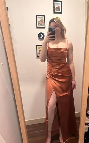 More information about Women's Cowl Neck Satin Bridesmaid Dresses for Wedding Mermaid Spaghetti Straps Long Formal Prom Gown with Slit
