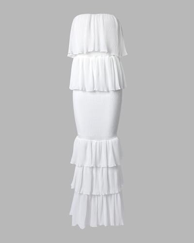 HOT ! CHICME Long Bridesmaid Dresses for Women Shirred Ruffle Hem Layered Bandeau Wedding Guest Dress Formal Evening Party Dress