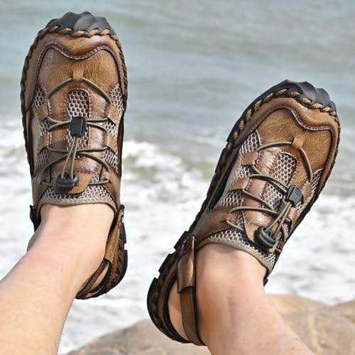 Men's Leather & Mesh Water Shoes with Adjustable Lace - Outdoor Footwear for Beach, Hiking, Camping Soft Lightweight Casual Sandal 5