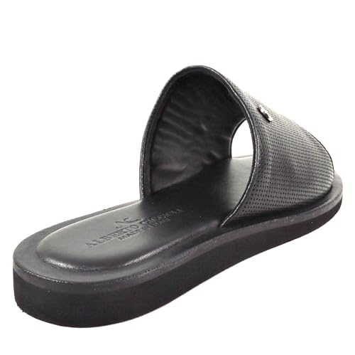 Men's Perforated Leather Slide Sandals, Black, Comfort Flat Summer Style, Size 42.5 Made in Italy 5