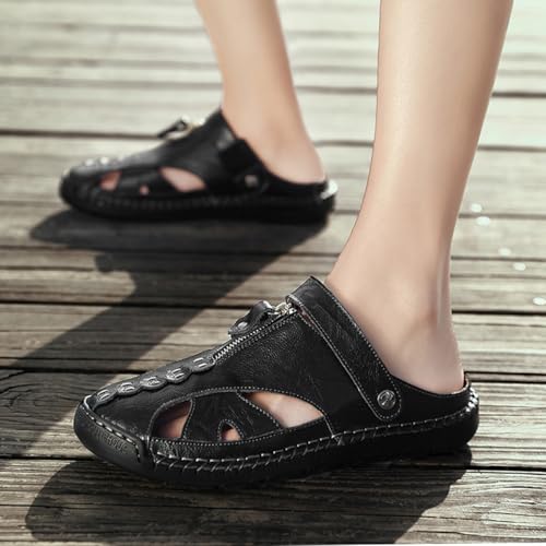 Mens Closed Toe Leather Handmade Sandals Adjustable Heel Strap Slip on Comfortable Anti-Slip Rubber Sole Hollow Hole Anti-Slip Slippers 7