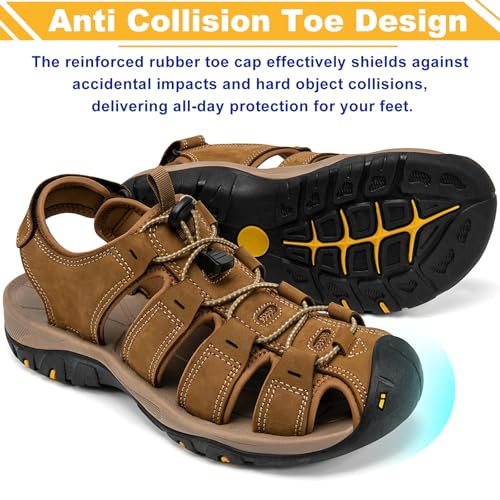 Men's Sport Sandals Closed Toe Leather Hiking Athletic Walking Outdoor Beach Trail River Fishing Water Shoes Lightweight Comfortable Waterproof 5