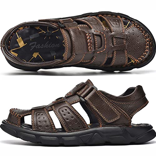 Men's Sport Sandals Closed Toe Outdoor Handmade Leather Sandal Adjustable Summer Fisherman Beach Shoes 5