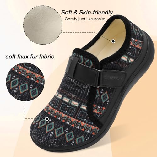 Spesoul Mens Wide Slippers Rubber Sole House Slippers Adjustable Diabetic Shoes Swollen Edema House Shoes for Indoor Outdoor Walking 6