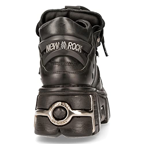 New Rock 106 S1 Men's Goth Punk Black Metallic Platform Fashion Ankle Boots 6