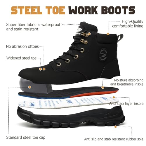 Steel Toe Work Boots for Men Women Lightweight Comfortable Waterproof Composite Toe Boots Slip Resistant Indestructible Wide Safety Shoes 6