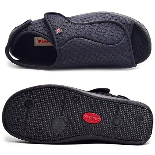 HOT ! W&LESVAGO Extra Wide Open toe Diabetic Sandals for Men, Adjustable Width Edema Shoes, Comfortable Men Slippers for Elderly Swollen Feet